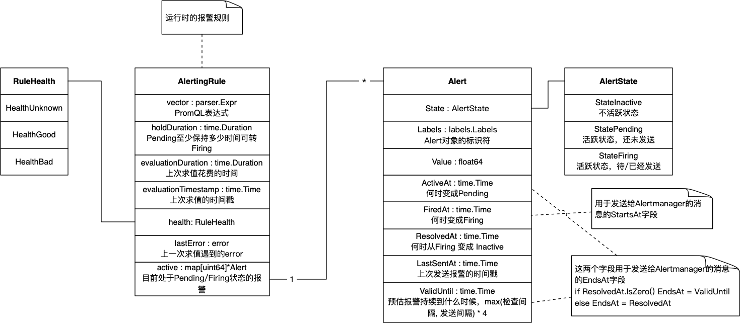 每个AlertingRule在运行时还维护具体的告警对象(Alert)。
